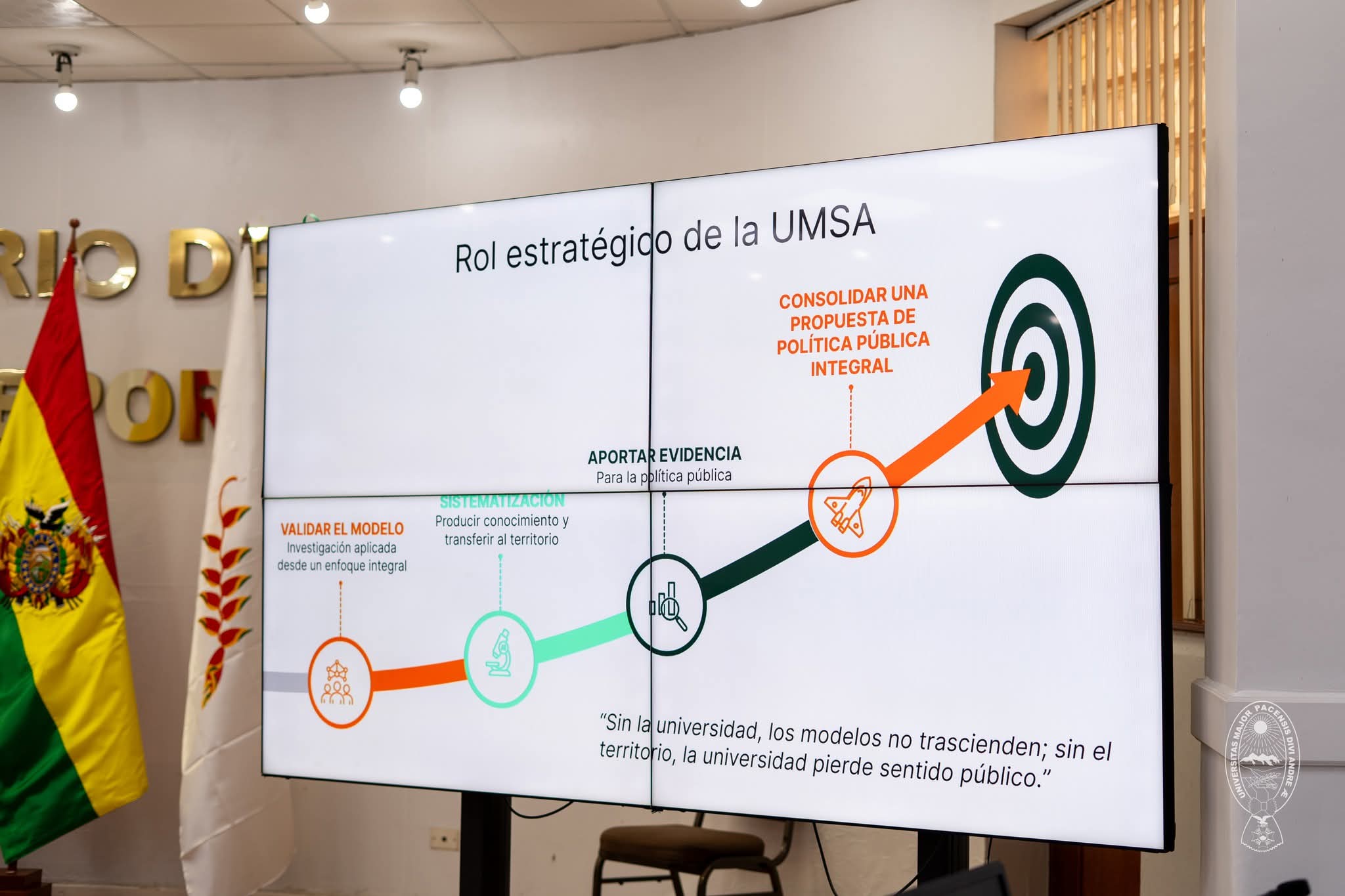 • Se definió una ruta de trabajo conjunta donde la UMSA pondrá a disposición su capacidad académica, técnica y tecnológica para ampliar el impacto de estas acciones, en coordinación con los ministerios de Salud y Educación.